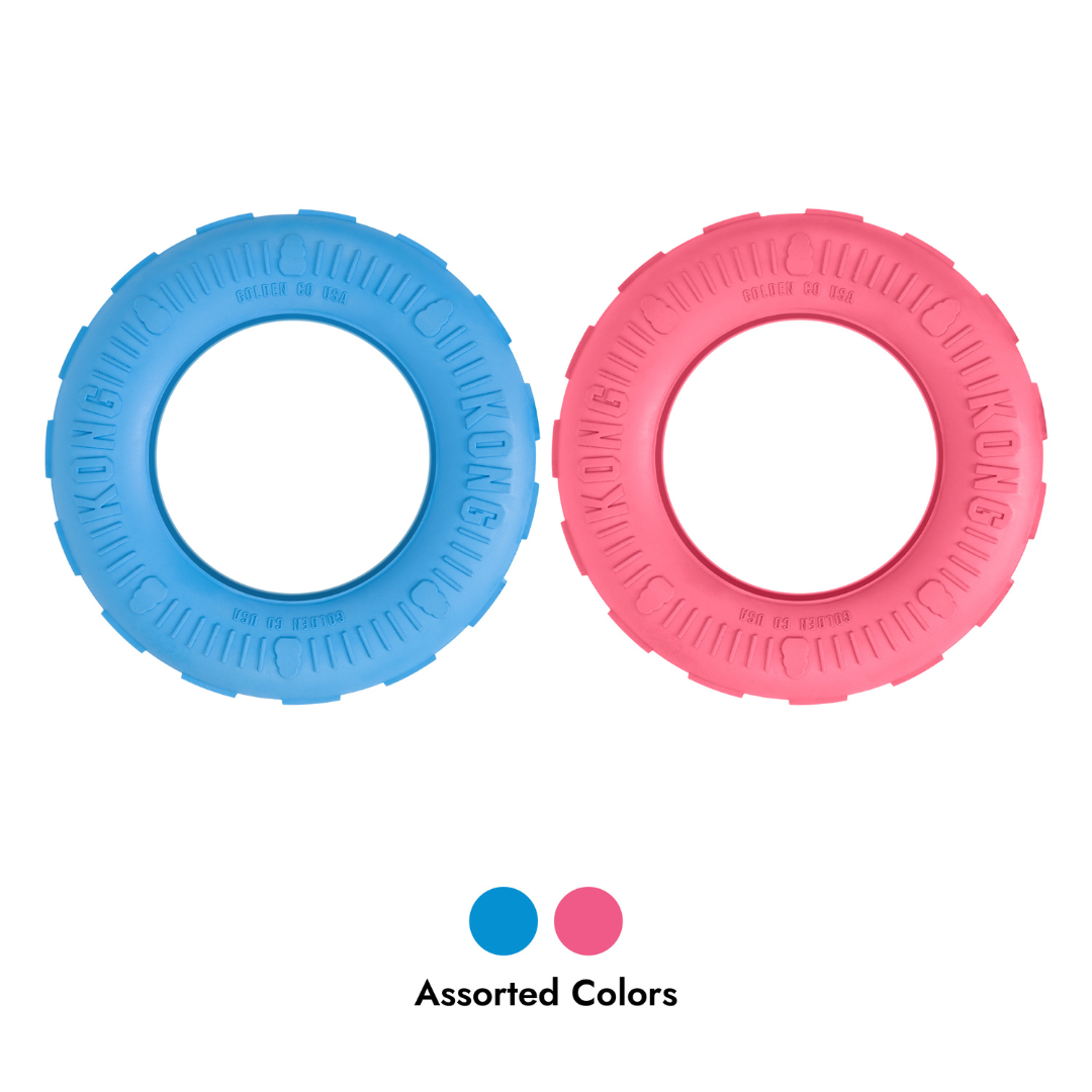 The new KONG Puppy Tire is an extension of the most popular KONG Classic Puppy line. Building on the success of the popular KONG Tires for adult dogs, this toy uses KONG’s exclusive puppy rubber formula specifically designed to ease teething gums. The stuffable inner track creates a mental challenge for puppies while teaching correct chewing habits. Freeze for a greater challenge.
