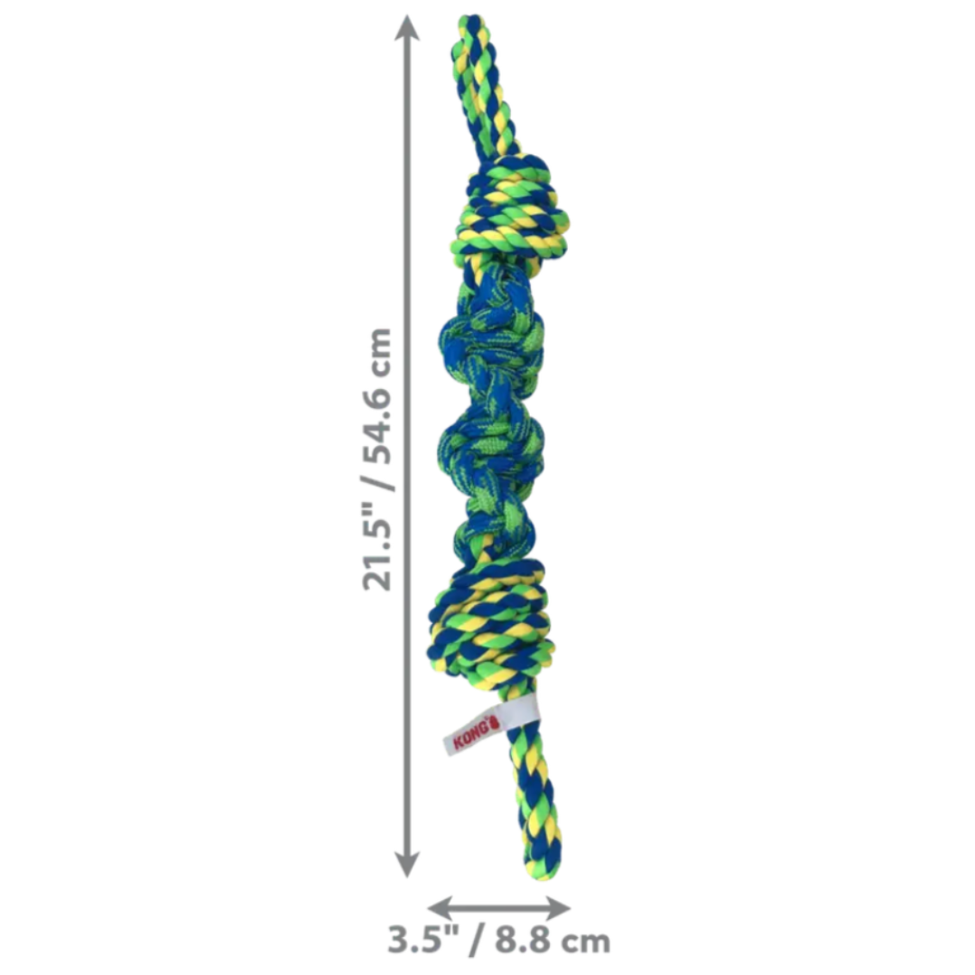 KONG Rope Bunji’s internal elastic bungee cord adds dynamic spring for extra-fun tugging and tossing with this durable, knotted, twisted rope toy. Two easy-grab loops deliver interactive ease while the bungee softens the tugging motion. Ideal for indoor and outdoor action.
